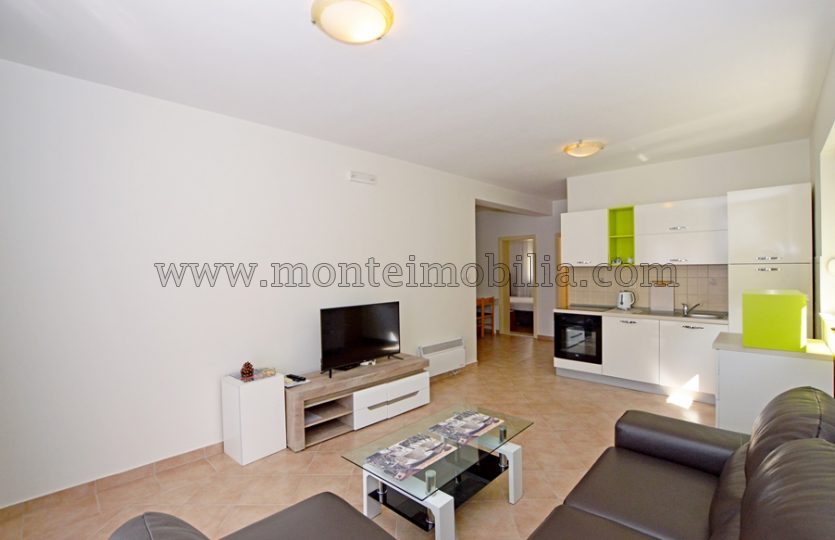 Two-bedroom apartment in new building Djenovici. The area of the apartment is 52 sqm. The apartment is for sale furnished, location near Portonovi Kumbor marina. Layout: hallway, 2 bedrooms, 2 terraces, bathroom, and living room with kitchen. The price is 156.000 euros. Parking space 10.000 euros