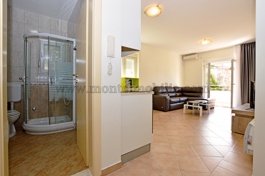 Трехкомнатная квартира в новостройке Дженовичи. Площадь квартиры 52 кв.м. Квартира продается с мебелью, расположение возле курортного комплекса Портонови Кумбор. Планировка: прихожая, 2 спальни, 2 террасы, ванная комната и гостиная с кухней. Цена 156.000 евро. Парковочное место 10.000 евро