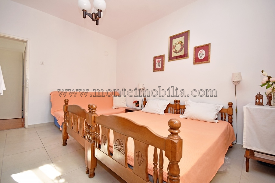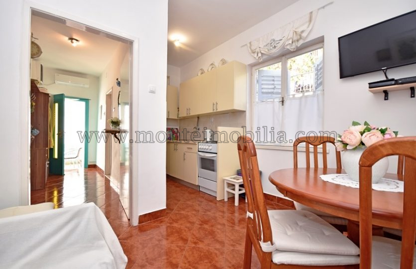 Two bedroom apartment with garden in Bijela. The apartment total area 50 sqm (registered in title deed on 40 sqm) + courtyard 99 sqm. Layout: kitchen and living room, two bedrooms, hallway and bathroom. Distance to the sea area 250 meters. Price: 94.000 euros.