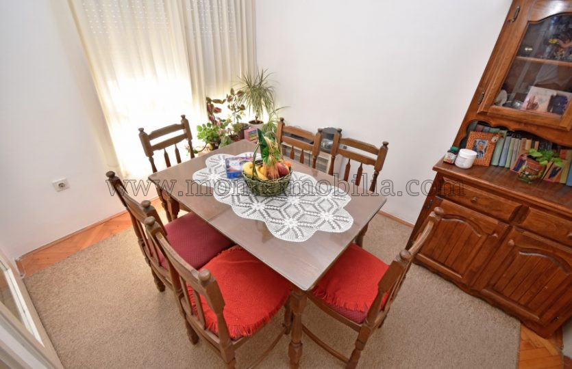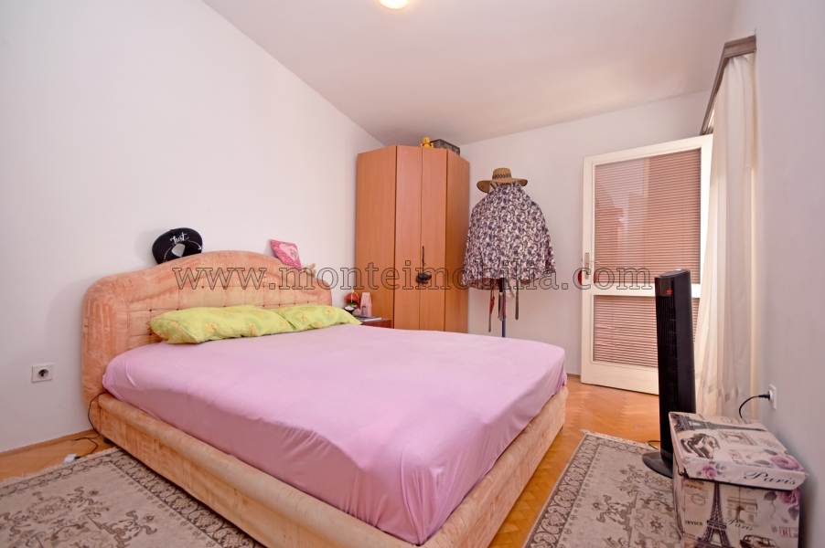 Jednosoban stan sa pogledom na more Bijela. Povrsina stana 54 m2 + terasa. Raspored prostorija: dnevni boravak, kuhinja sa dodatnom ostavom, trpezarija, hodnik, spavaca soba kupatilo i terasa. Udaljenost do mora 4-5 minuta hoda. Cijena: 83.200 eura