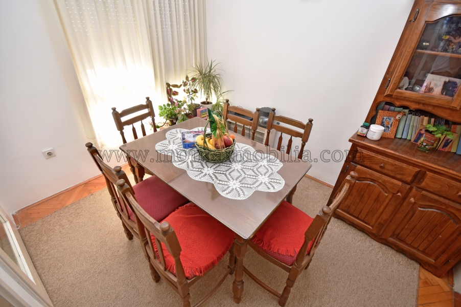 One bedroom apartment with sea view in Bijela. The apartment total area 54 sqm + terrace. Layout: kitchen with storage, living room, dining area, hallway, bedroom, bathroom and terrace. Distance to the sea area and promenade 4-5 minutes walk. Price: 83.200 euros.