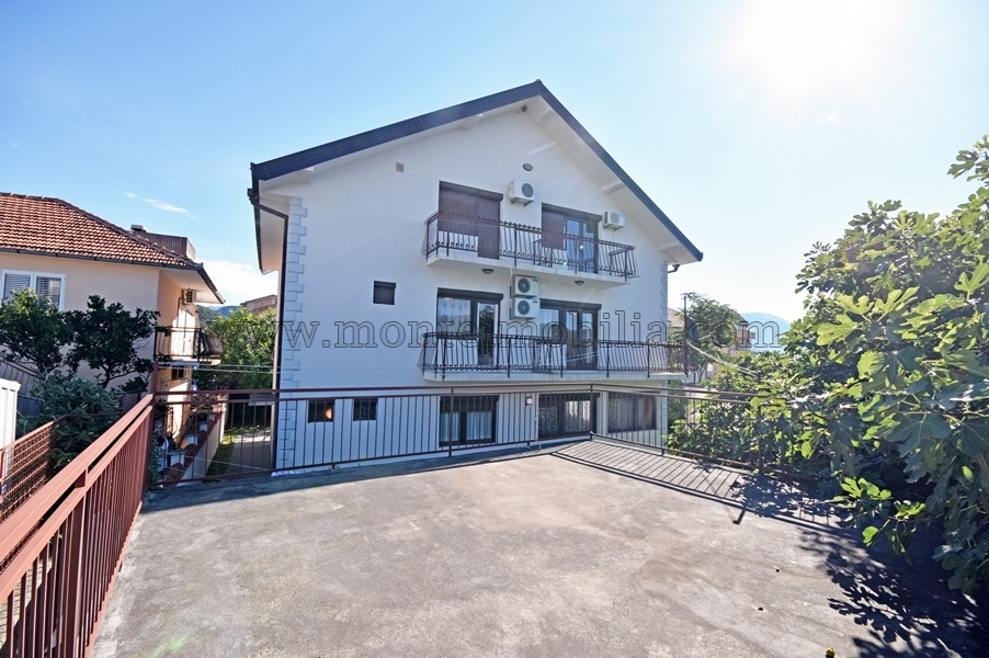 Family house near the waterfront in Bijela. The house total area 314 sqm + garage 30 sqm + 440 sqm of yard. The house is consisted of ground floor: one bedroom apartment; first floor: 4 bedrooms, 3 bathrooms, kitchen with dining room and 4 terraces; top floor: apartment with bathroom and kitchen, 3 bedrooms, 2 bathrooms and 4 terraces. The house is in the process of legalization.